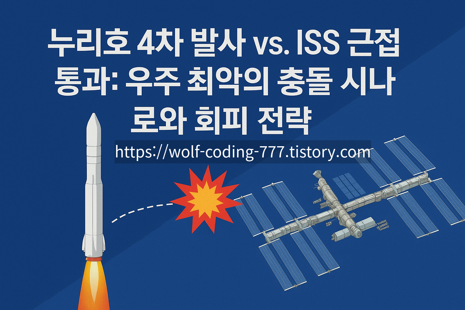 대한민국 우주 개발의 쾌거로 불리는 누리호의 4차 발사가 코앞으로 다가왔습니다. 하지만 이번 발사는 단순한 기술적 도전을 넘어, 국제우주정거장(ISS)과의 예기치 않은 근접 통과라는 국제적 위험을 안고 있습니다. 한국항공우주연구원(항우연)은 발사체와 ISS 간의 최소 안전거리인 200km를 보장해야 하지만, 특정 시간대에 이 거리가 위반될 것으로 예측되어 긴급 발사 시각 조정에 들어갔습니다. 이번 기사는 우주 교통 관제 역사상 드문 이 충돌 위험의 전말과, 이를 완벽하게 회피하기 위한 대한민국의 '007 작전급' 정밀 우주 회피 전략을 심층 분석합니다.
