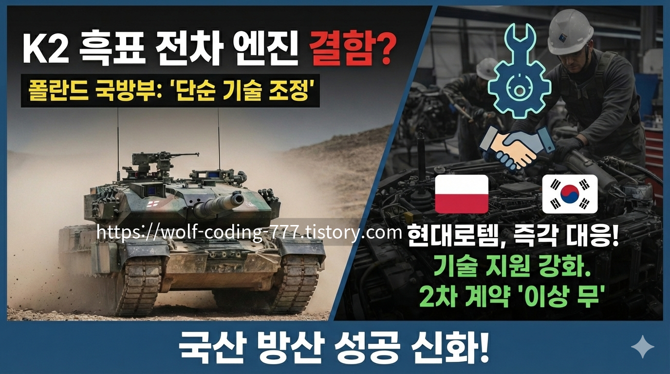 최근 K-방산의 선두주자인 K2 흑표 전차가 폴란드 현지에서 예상치 못한 기술적 암초를 만났습니다. 폴란드 육군 제16 기계화사단에 배치된 초기 물량 중 일부에서 국산 DV27K 엔진의 조립 불량(Assembly Defects)이 확인된 것입니다. 본 리포트에서는 이번 사태의 본질과 대응 방안을 정밀 분석합니다.