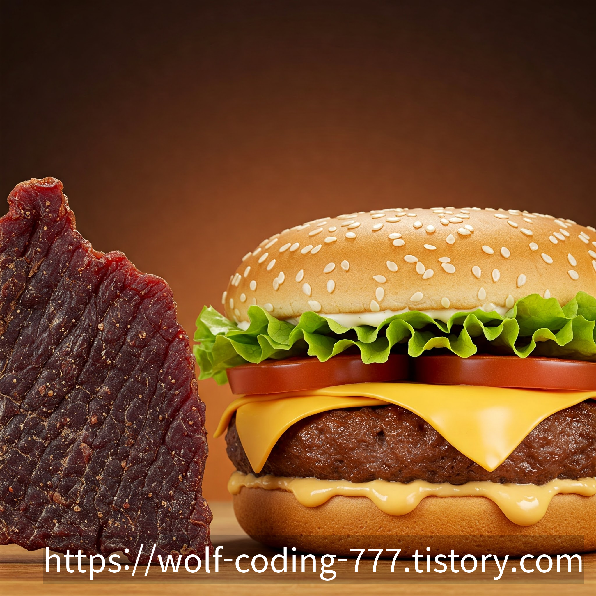 육포에서 햄버거까지, 육류의 역사는 보존 기술과 문화의 융합이다. 육포는 생존을 위한 지혜였고, 햄버거는 현대의 속도와 편리를 상징한다. 둘은 기술의 진화와 인간의 욕구를 반영하며, 앞으로도 새로운 형태로 우리 식탁을 채울 것이다.