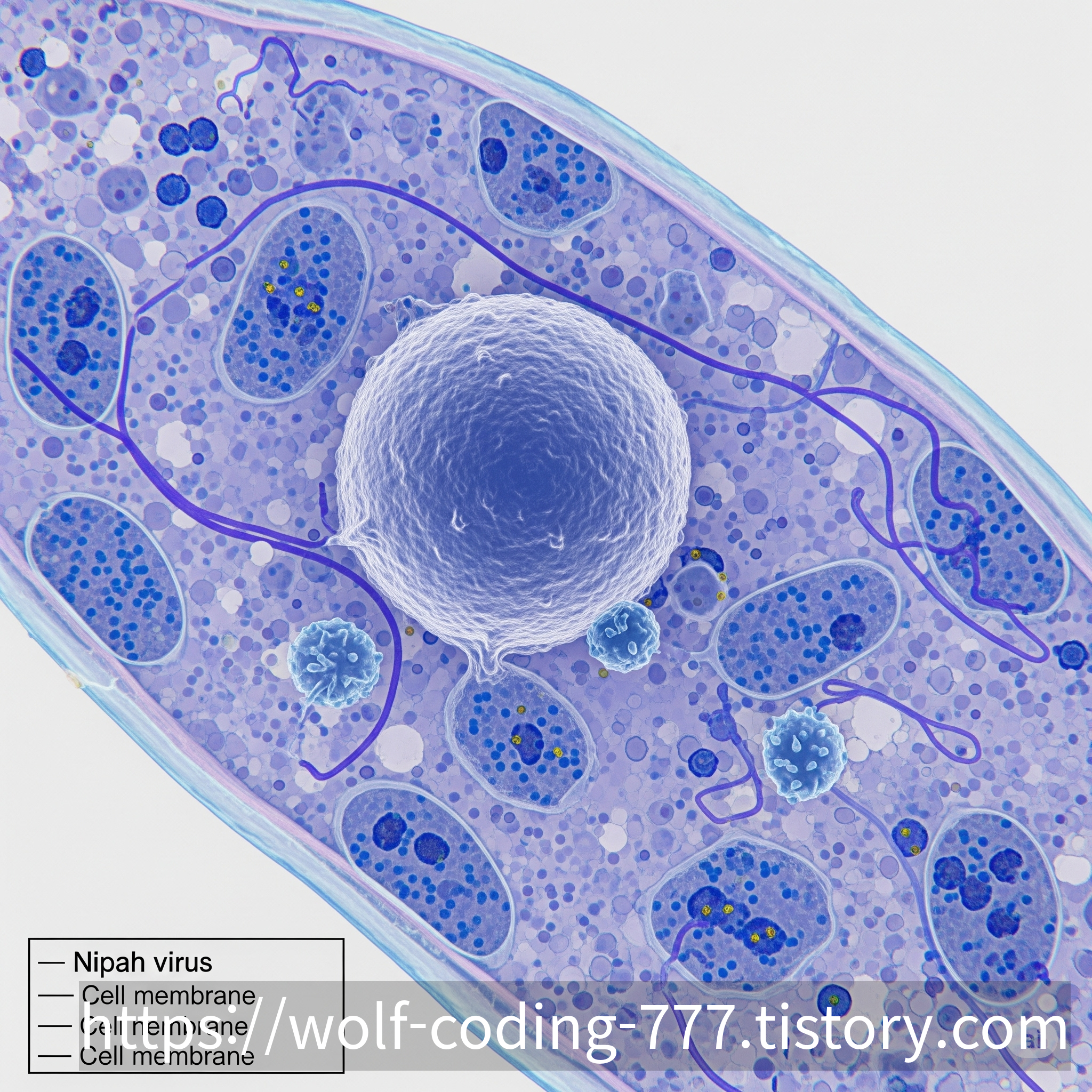 전파는 동물-인간 접촉(예: 돼지, 오염된 과일) 또는 제한적인 사람 간 접촉으로 발생합니다. 현재 니파 바이러스 백신이나 치료제는 없으며, 지원 치료만 가능합니다.