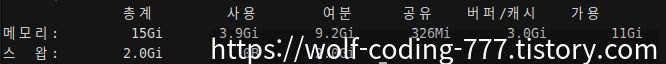 예시: free -h를 입력하면 아래와 같은 결과가 나와요!