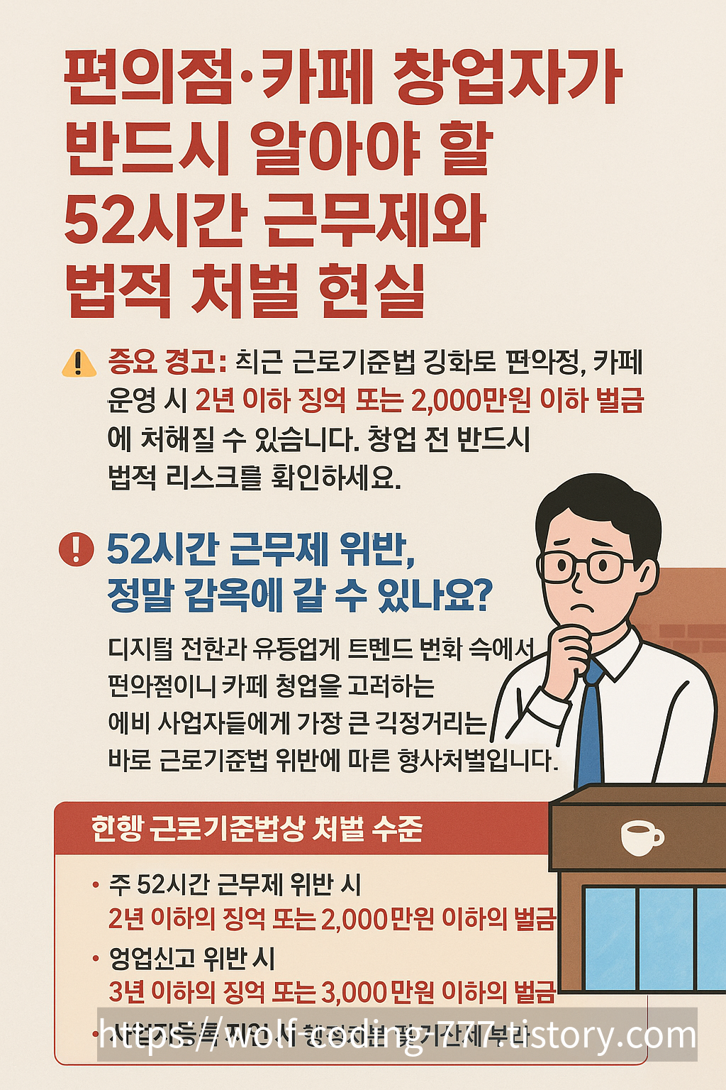 편의점·카페 창업자가 반드시 알아야 할 52시간 근무제와 법적 처벌 현실
