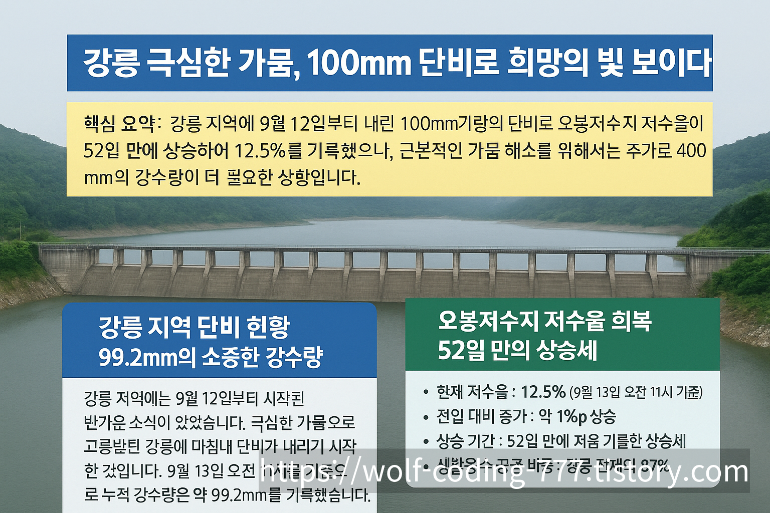 본 기사는 2024년 9월 13일 기준의 공개된 기상 데이터와 지방자치단체 발표 자료, 관련 전문가 의견을 종합하여 작성되었습니다. 강수량 및 저수율 수치는 해당 일자의 공식 측정 데이터를 기반으로 하였습니다.