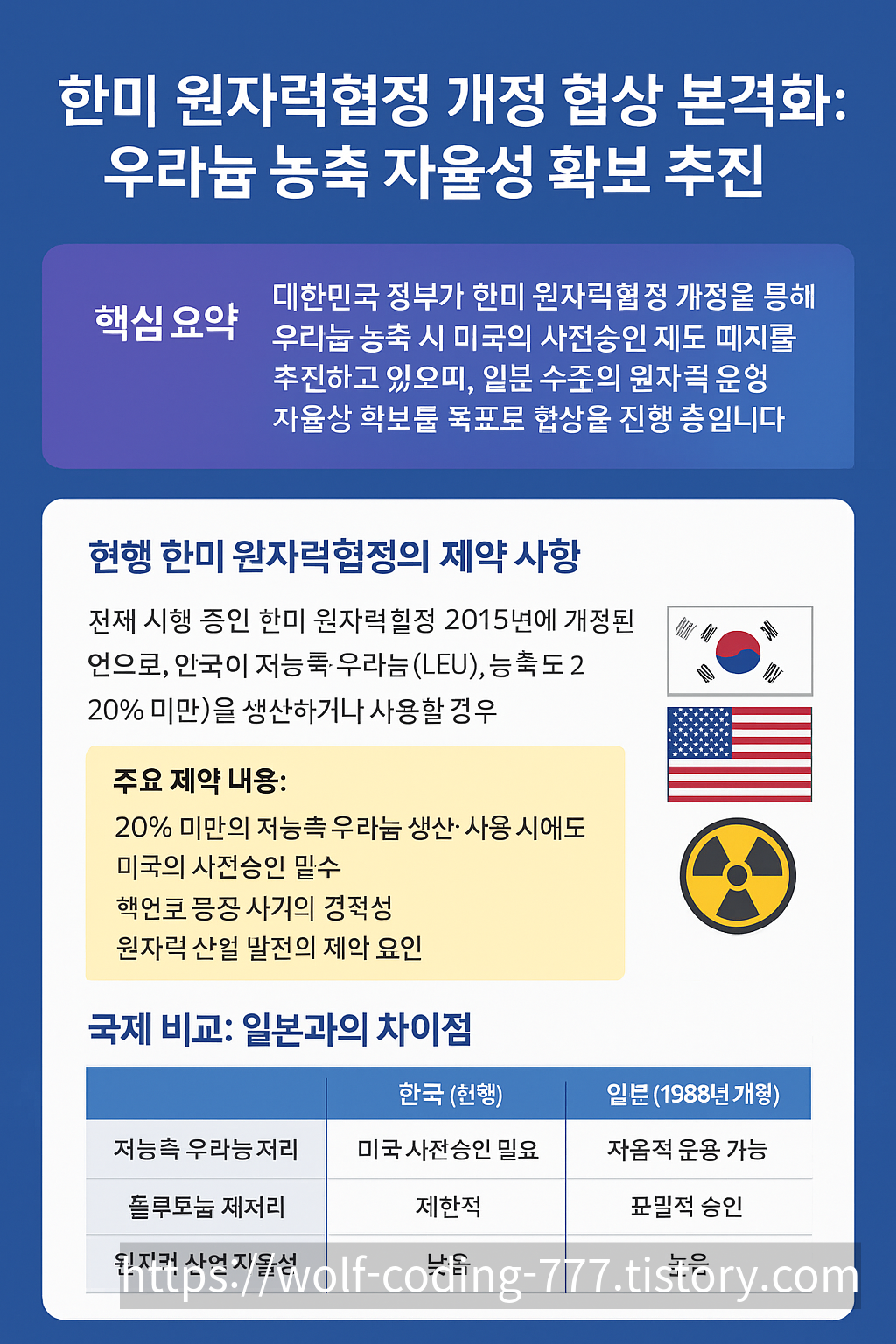 | 저농축 우라늄 처리 | 미국 사전승인 필요 | 자율적 운용 가능 |